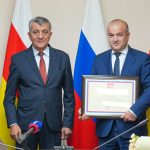 Глава РСО – Алания Сергей Меняйло вручил генеральному директору «Газпром межрегионгаз Владикавказ» Алану Кодзаеву Почетную грамоту Президента Российской Федерации за достигнутые …